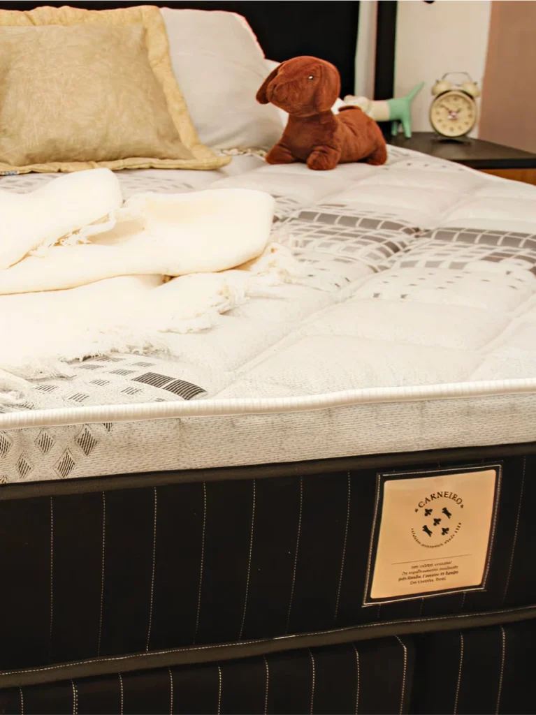Nosso colchão artesanal Carneiro é fabricado exclusivamente para seu biotipo e modo de dormir, proporcionando bem-estar incomparável por um valor surpreendentemente próximo ao de opções genéricas do mercado.