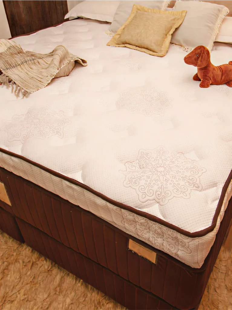 Sua combinação única de materiais nobres e produção artesanal exclusiva resulta em um dos melhores sistemas de dormir, comparável aos equivalentes europeus. Oferece uma das melhores relações investimento-benefício do mercado de luxo, proporcionando máximo conforto ortopédico por até 12 anos.